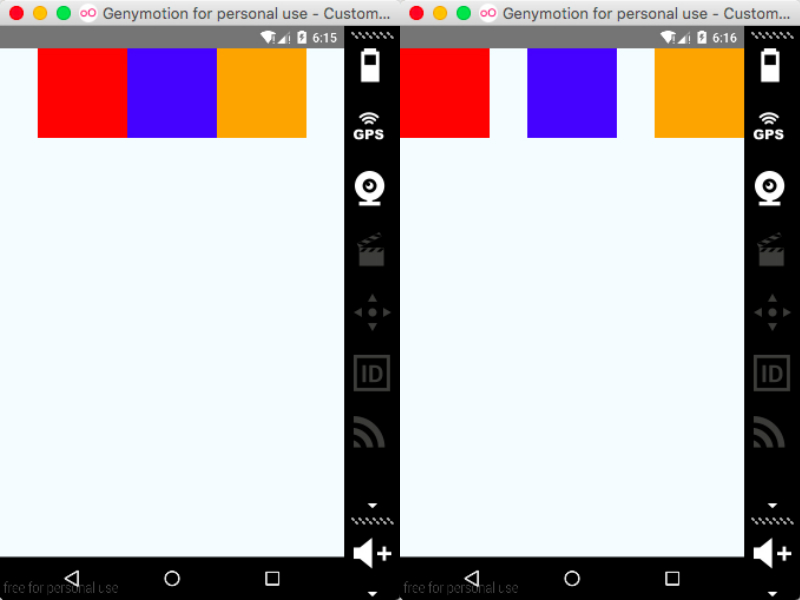 • space-evenly: child在主轴方向均匀分布。相邻间距与首尾间距相等