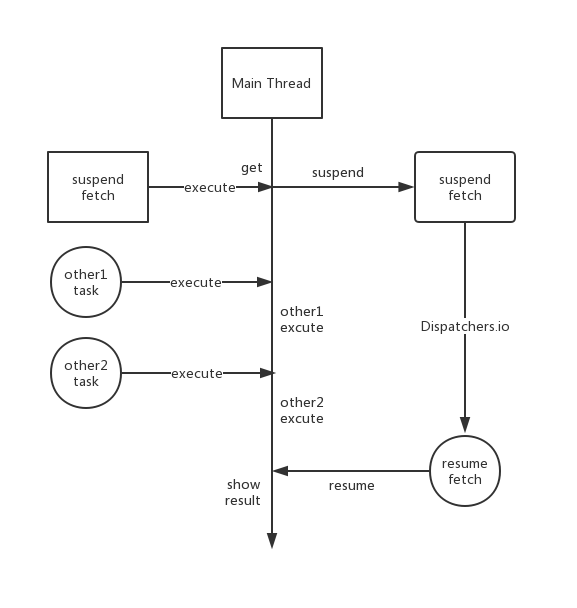 解释的有点生硬,简单的来说就是suspend可以将该任务挂起,使它暂时不在调用的线程中,以至于当前线程可以继续执行别的任务,一旦被挂起的任务已经执行完毕,那么就会通过resume将其重新插入到当前线程中。